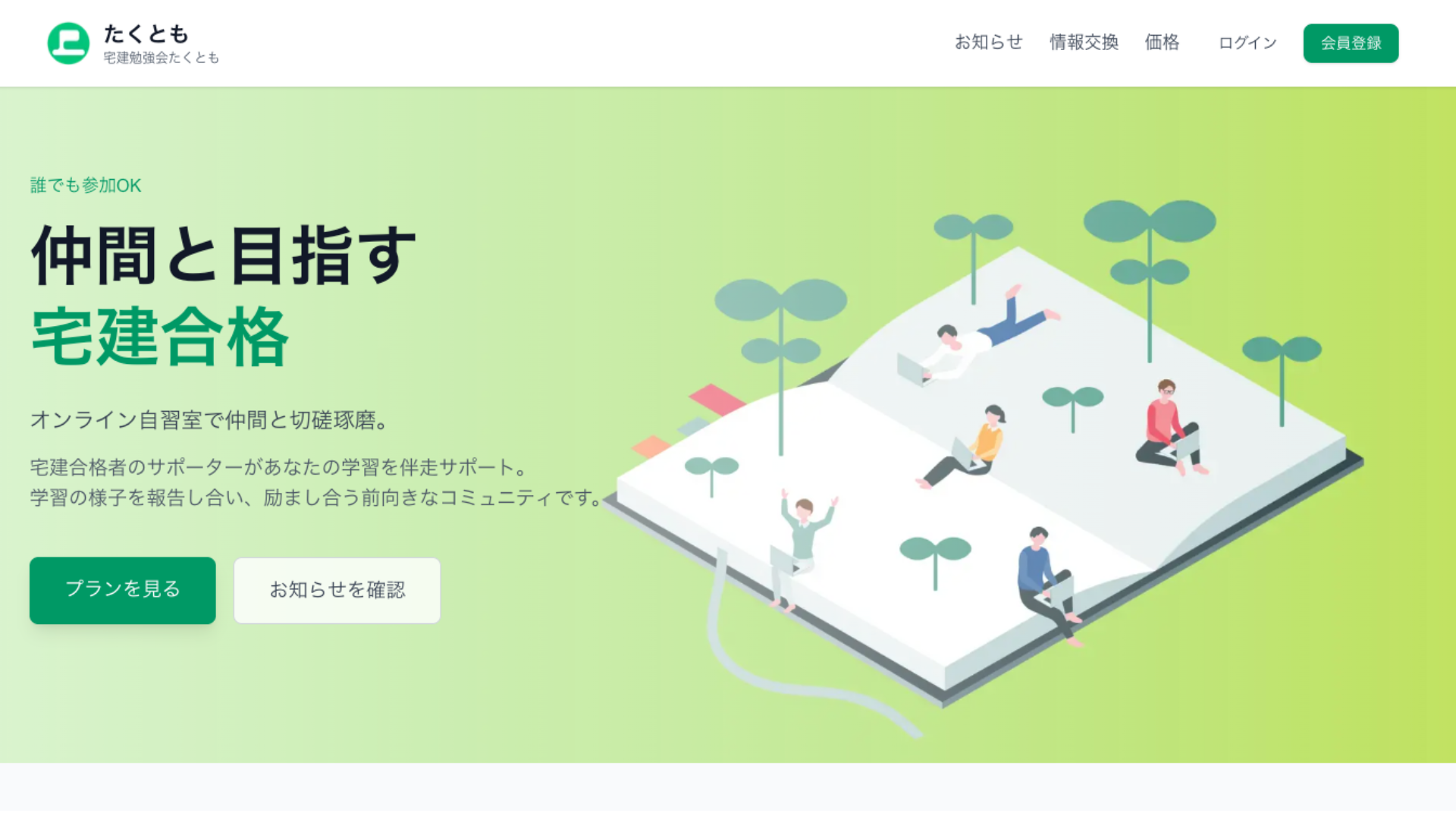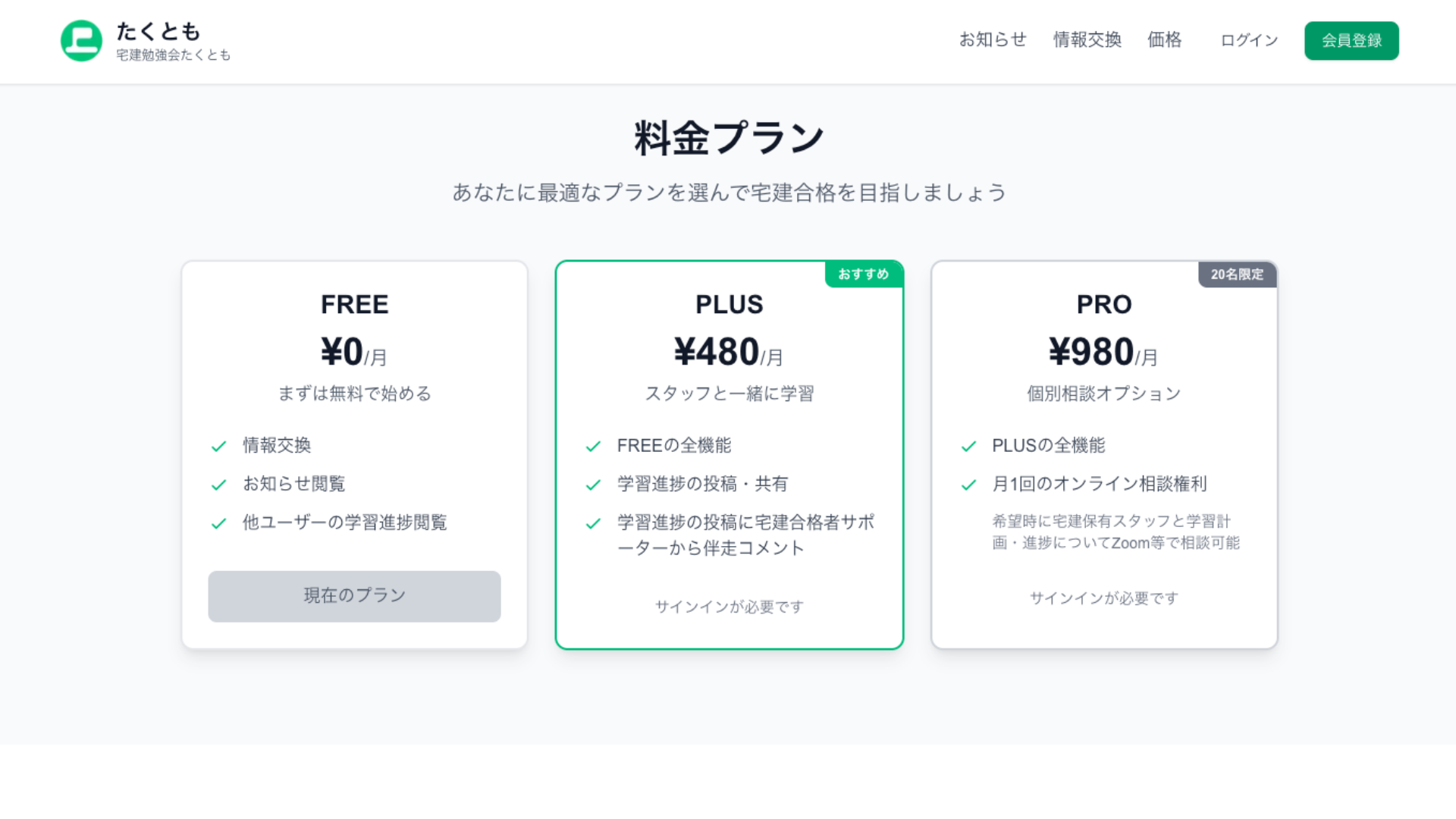 馬渡(以下略):はい、たくともは宅地建物取引士試験を目指す方のためのオンライン自習室兼コミュニティサービスです。ポイントは「仲間と一緒に学べること」と「宅建合格者による伴走サポート」。無料のFREEプランで他の受験生の進捗を見たり情報交換ができ、PLUSプラン(月額480円)では進捗投稿や合格者からの個別コメントでより密なサポートを受けられます。日々の学習記録を投稿することで習慣化を促す設計にしています。