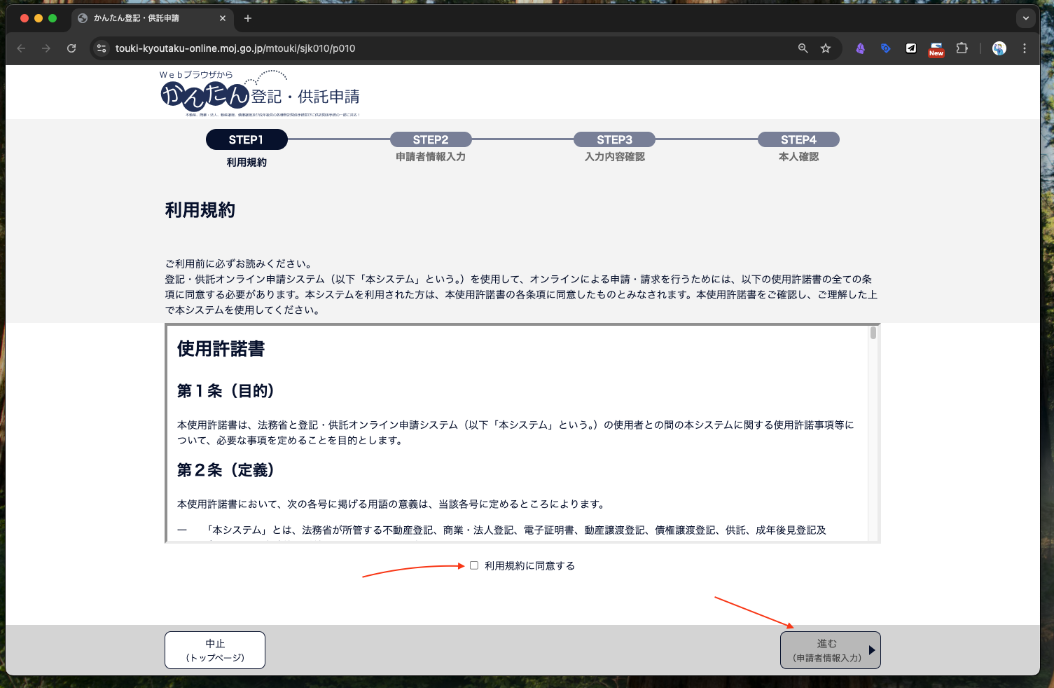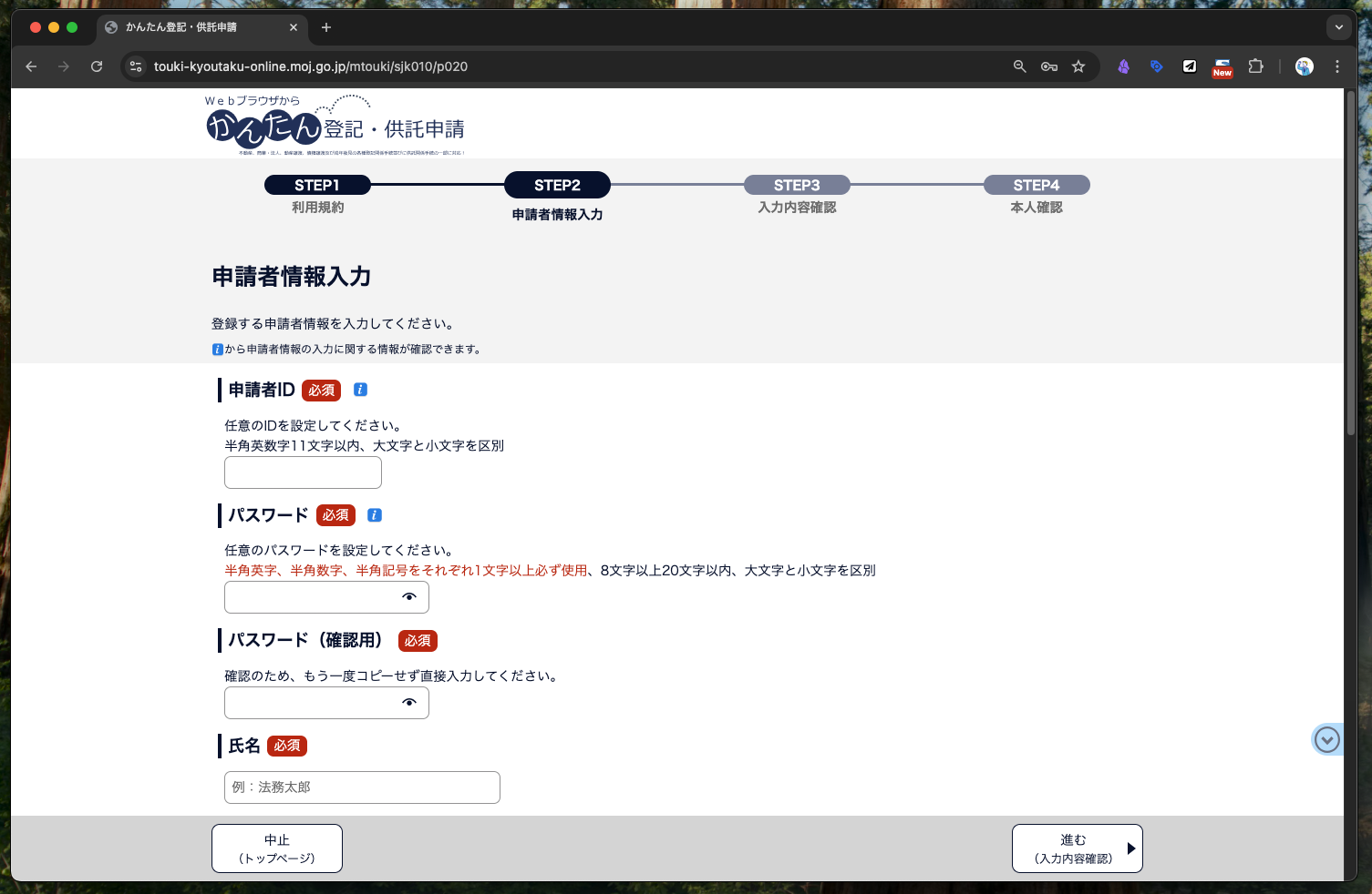- https://www.touki-kyoutaku-online.moj.go.jp/mtouki/ にアクセスし、申請者IDを取得する(初回のみ)